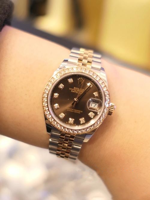 Swiss Rolex Datejust Replica 279174 Stainless steel strap 28MM Brown Dial Diamonds.Produced by WF, women's log type 28㎜ log type 279174① : women's log type oyster case is a solid elegant, perfect proportion of the model. Use 316L stainless steel to forge stainless steel watch case, with high corrosion resistance. The superalloy is not only extremely durable and easy to polish, but remains beautiful even in the most extreme environments. ② : Built-in assembly and disassembly machine 2671 movement performance is extremely stable, its seismic force, geometric structure so that the movement can maintain regular operation in any position. ③ : triangular pit bottom cover with special tools to tighten, so that the case is completely sealed, the chain crown with double buckle lock double waterproof system, firmly tighten the case, make more waterproof. ④ : The mirror is made of anti-scratch blue crystal, and a small convex lens is installed at 3 o 'clock to facilitate the reading of the date. Women's log type waterproof oyster case to give high precision movement the best protection. ⑤ : watch band and the new hidden connection under the outer ring, to ensure that the visual effect of seamless connection between the band and the case. The redesigned commemorative strap features a new generation concealed crown buckle that opens with the hinged Rolex Crown logo. The oyster strap version comes with a folding oyster buckle. Luo Li S classic women's watch, has always been synonymous with elegant style and accurate timepiece, the log type elegant temperament and unique function condensed in a small and exquisite case, more suitable for women's slender wrist.