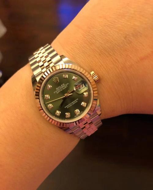 Brand: Rolex Range: Datejust Gender: Ladies Movement: Swiss 2671 Automatic Case Size: 28MM Mirror material: Sapphire Crystal Water Resistance: Life Waterproof Buckle Type: Folding Buckle Case Material: Stainless steel Bracelet Material: Stainless steel Dial Colors: Green Strap Colors: Stainless steel Wearing Occasions: Formal Wear, Business Casual, Collection Swiss Rolex Datejust Replica 279174 Stainless steel strap 28MM Green Dial.Produced by WF, women's log type 28㎜ log type 279174① : women's log type oyster case is a solid elegant, perfect proportion of the model. Use 316L stainless steel to forge stainless steel watch case, with high corrosion resistance. The superalloy is not only extremely durable and easy to polish, but remains beautiful even in the most extreme environments. ② : Built-in assembly and disassembly machine 2671 movement performance is extremely stable, its seismic force, geometric structure so that the movement can maintain regular operation in any position. ③ : triangular pit bottom cover with special tools to tighten, so that the case is completely sealed, the chain crown with double buckle lock double waterproof system, firmly tighten the case, make more waterproof. ④ : The mirror is made of anti-scratch blue crystal, and a small convex lens is installed at 3 o 'clock to facilitate the reading of the date. Women's log type waterproof oyster case to give high precision movement the best protection. ⑤ : watch band and the new hidden connection under the outer ring, to ensure that the visual effect of seamless connection between the band and the case. The redesigned commemorative strap features a new generation concealed crown buckle that opens with the hinged Rolex Crown logo. The oyster strap version comes with a folding oyster buckle. Luo Li S classic women's watch, has always been synonymous with elegant style and accurate timepiece, the log type elegant temperament and unique function condensed in a small and exquisite case, more suitable for women's slender wrist.