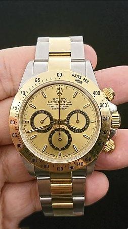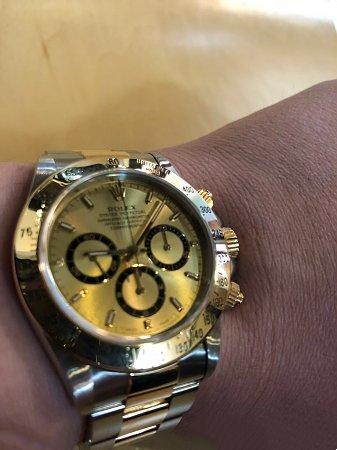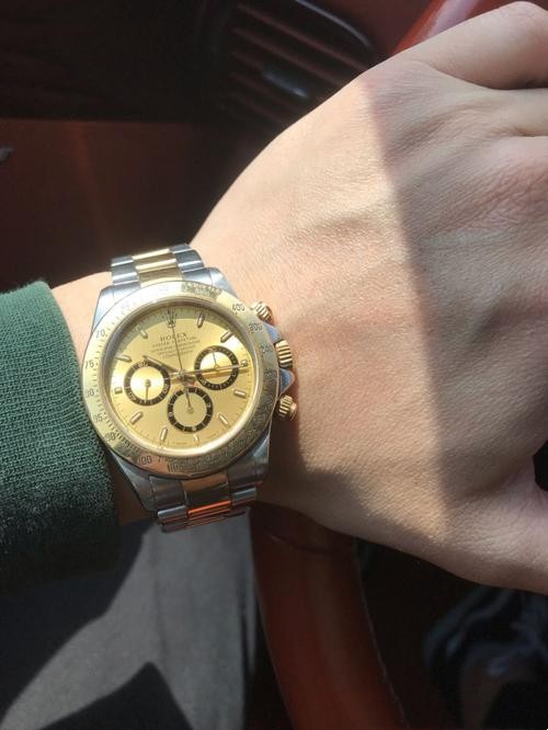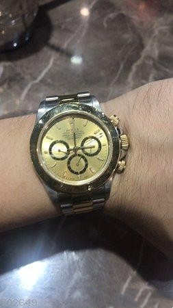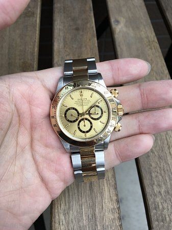 This Rolex Daytona is a dream come true. The yellow gold dial is stunning and the watch is so comfortable. I'm very happy with my purchase.
