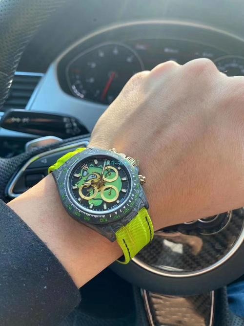 Swiss Rolex Daytona Replica Canvas strap 40MM.WWF new product release: Rolex carbon fiber Daytona series, the same weight, the same material, the same size as the original, a perfect replica of the original, carbon shell carbon back cover carbon buttons, twin ears, the only matching version in the market, and a lot of color matching to meet your various needs. [Case] Made of carbon fiber material, light and comfortable to wear, each watch has a unique carbon fiber pattern. Because the carbon fiber material is very hard, the loss of the case during the CNC molding process is also very large! [Mirror surface] The double-sided electroplating high-permeability film process increases the permeability of the entire sapphire mirror surface by 50%; a good mirror surface can improve the texture of the entire watch! [Literal] Novel style, each nail scale is chamfered and polished to enhance the literal texture and gloss! [Bracelet] Made of natural rubber, it is comfortable to wear, the texture is soft and very close to the hand, and the line of the strap echoes the literal color, which is completely in line with the original! [Movement] Using the precise and mature Shanghai 7750 chronograph movement, the functions are synchronized with the original!