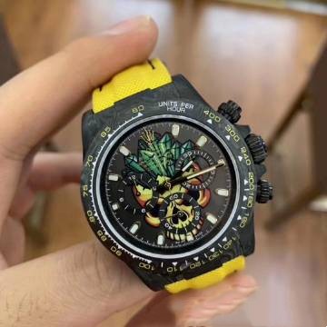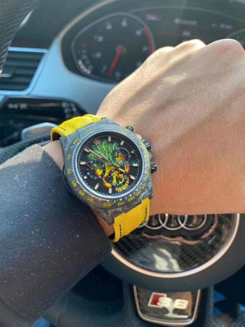 Swiss Rolex Daytona Replica Canvas strap 40MM.WWF new product release: Rolex carbon fiber Daytona series, the same weight, the same material, the same size as the original, a perfect replica of the original, carbon shell carbon back cover carbon buttons, twin ears, the only matching version in the market, and a lot of color matching to meet your various needs. [Case] Made of carbon fiber material, light and comfortable to wear, each watch has a unique carbon fiber pattern. Because the carbon fiber material is very hard, the loss of the case during the CNC molding process is also very large! [Mirror surface] The double-sided electroplating high-permeability film process increases the permeability of the entire sapphire mirror surface by 50%; a good mirror surface can improve the texture of the entire watch! [Literal] Novel style, each nail scale is chamfered and polished to enhance the literal texture and gloss! [Bracelet] Made of natural rubber, it is comfortable to wear, the texture is soft and very close to the hand, and the line of the strap echoes the literal color, which is completely in line with the original! [Movement] Using the precise and mature Shanghai 7750 chronograph movement, the functions are synchronized with the original!