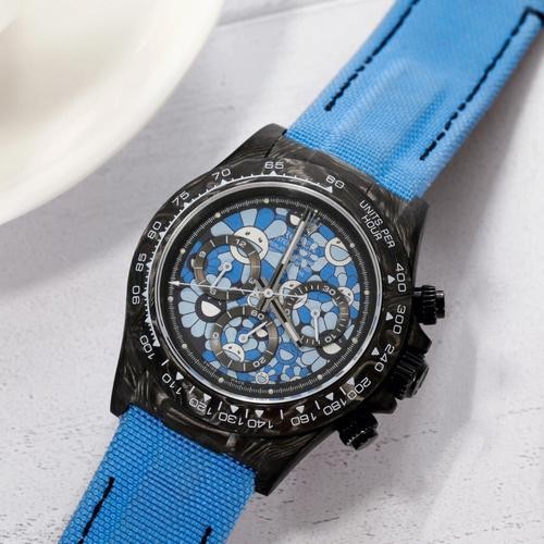 This watch is fantastic! The blue dial is so vibrant, and the canvas strap is very comfortable. It looks almost identical to the original Rolex Daytona. The craftsmanship is impressive, and I'm really happy with my purchase.