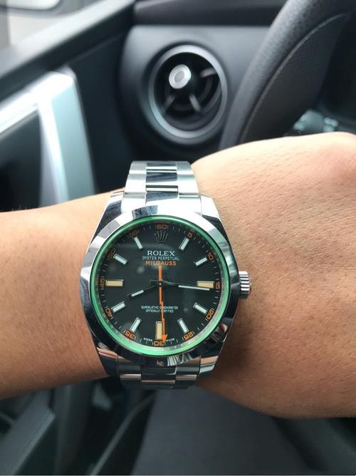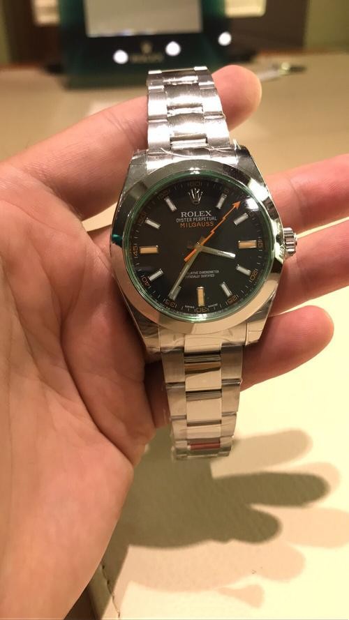 This Rolex Milgauss is a dream come true! The black dial sparkles like the ocean, and the stainless steel strap feels so premium. Love it!