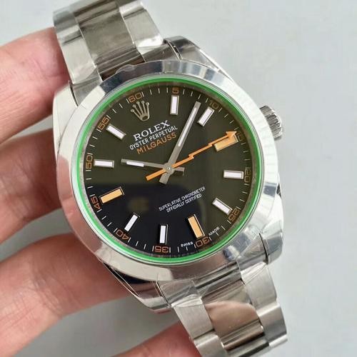 Swiss Rolex Milgauss Replica Stainless steel strap 40MM Black Dial.AR masterpiece of craftsmanship,RO.LEX Super full 904L grid type 114060 Lightning needle 3131 movement series. New 3131 blue oiled wire movement with solid center shaft, shell and "as always" solid full 904L steel cast. The strongest detail grinding process. Constant pursuit of perfection and continuous innovation -AR FACTORY