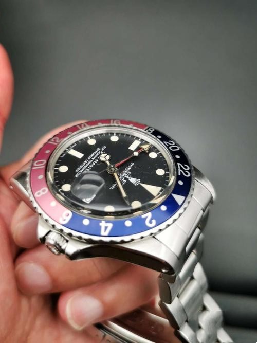 Brand: Rolex Range: GMT Master Reference number: 1675 Gender: Mens Movement: Automatic Case Dimensions: 40 MM Strap Colors: Silver Case Shape: Round Case Material: Stainless Steel Dial Color: Black Crystal: Scratch Resistant Sapphire Bezel Color: Blue & Red Water Resistance: Life waterproof Band Material: Stainless Steel Bezel: Fluted Band Name: Oyster Bezel Material: Ceramics Screw-in Crown: Yes Case Back: Solid Clasp: Folding Clasp With Safety Latch -