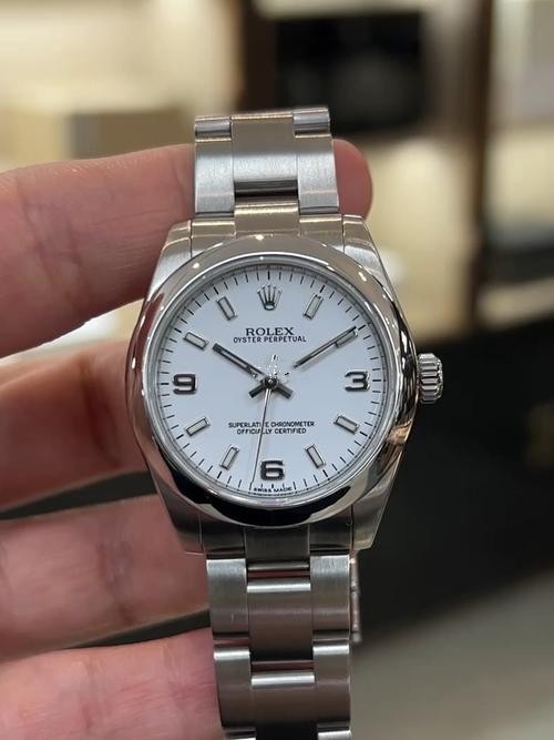 Brand: Rolex Range: Lady Oyster Perpetual Reference number: 177200 Gender: Ladies Movement: Automatic Case Dimensions: 31 MM Strap Colors: Silver Case Shape: Round Crystal: Scratch Resistant Sapphire Bezel Color: Silver Case Material: Stainless Steel Dial Color: White Water Resistance: Life waterproof Band Material: Stainless Steel Bezel: Smooth Band Name: Oyster Bezel Material: Stainless steel Clasp: Folding Clasp With Safety Latch Availability: Item is in stock Case Back: Solid -