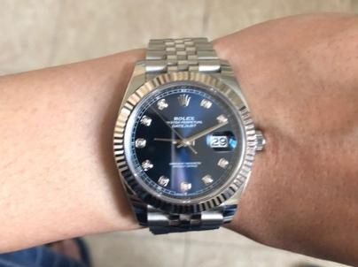 This Rolex replica is truly amazing. The blue dial is so beautiful and the stainless steel strap is very comfortable. The watch is very well-made and looks just like the real thing.