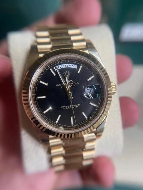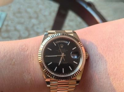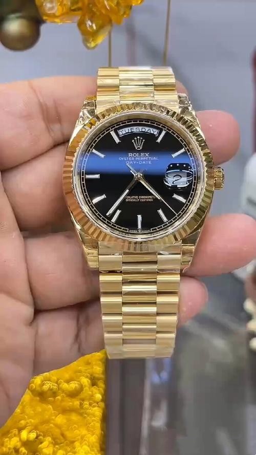 This Rolex replica is amazing. The yellow gold strap looks so elegant and the black dial is very stylish. The watch runs smoothly and the craftsmanship is impressive. I'm really happy with my purchase and would definitely recommend it to others.
