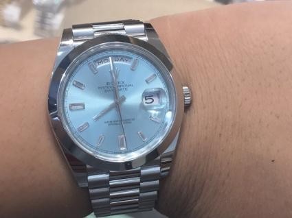 Absolutely love the 40MM size and blue dial. It looks almost identical to the real Rolex. Great value for the price!