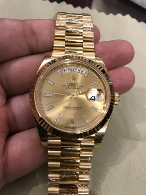 This Rolex replica exceeded my expectations. The yellow gold strap is so shiny and the golden dial has a nice texture. It looks almost like the real thing. The 40mm size is perfect for my wrist and it feels comfortable to wear.