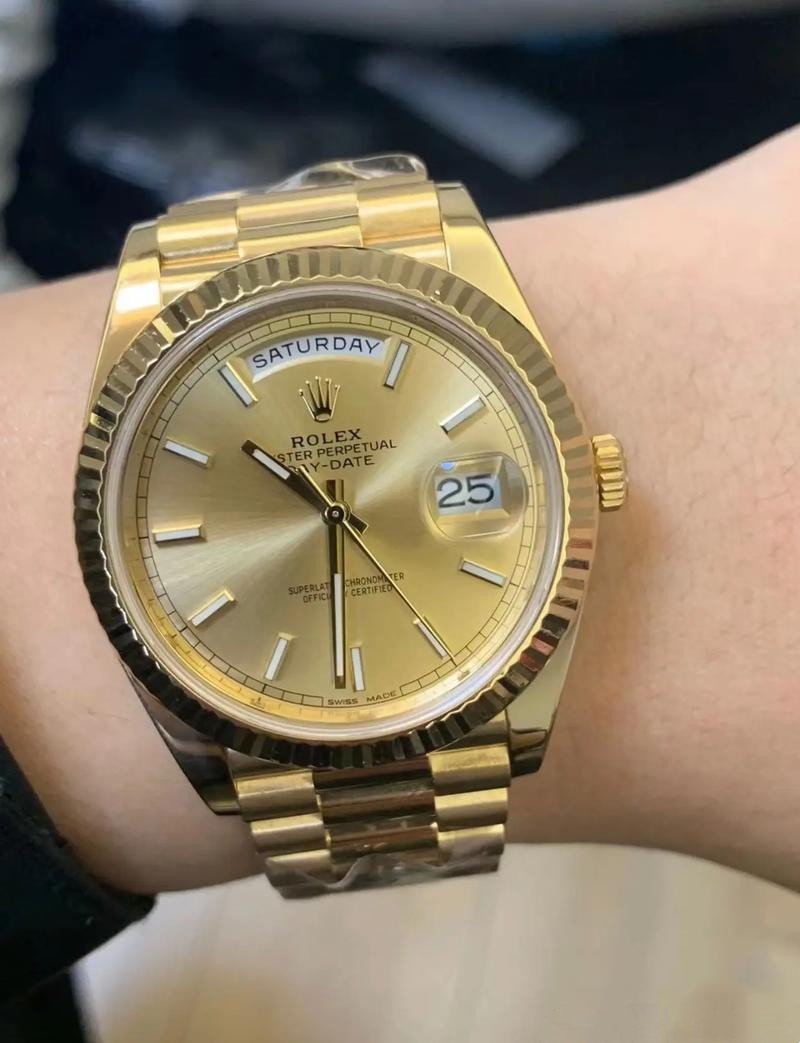Swiss Rolex Day Date Replica 228238 Yellow Gold strap 40MM.N Rolex Perpetual Series Day-Date 228238. Authentic open mold, thickened 18k gold plating to ensure 5 years of colorfastness, using a new generation of 3255 movement completely developed by Rolex, the diameter of the watch is 40MM.