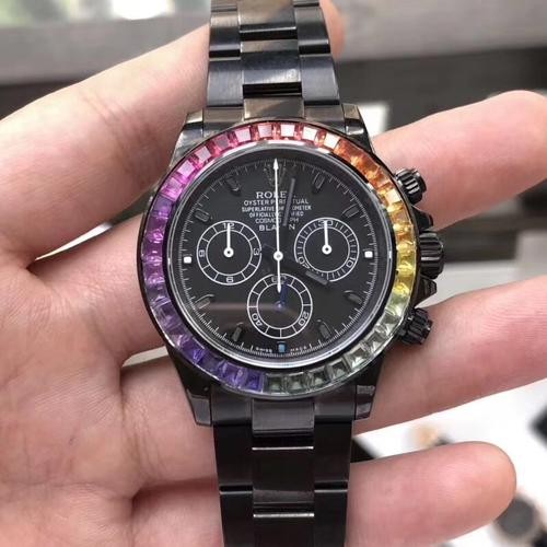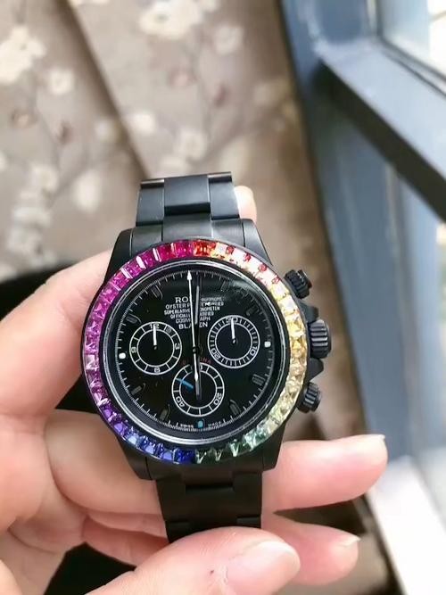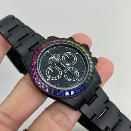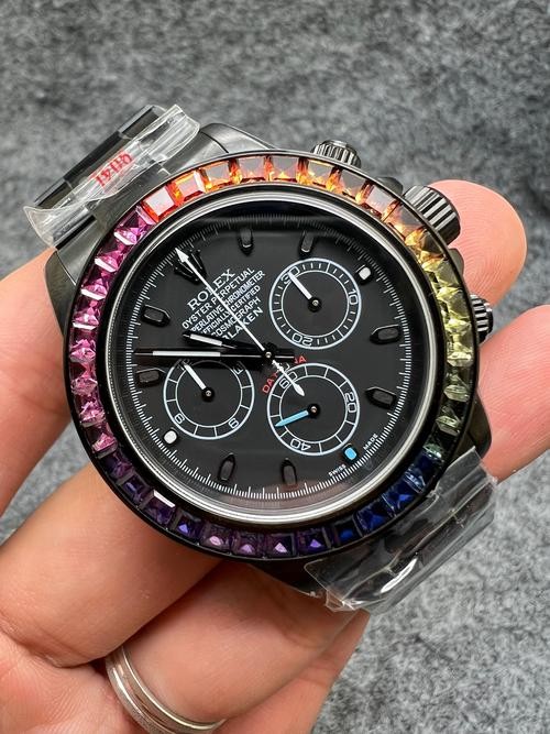 The detailing on this Daytona replica is impressive—especially the gem settings. The black dial contrasts perfectly with the rainbow accents. Wears comfortably and looks luxurious!