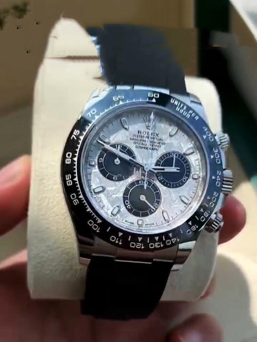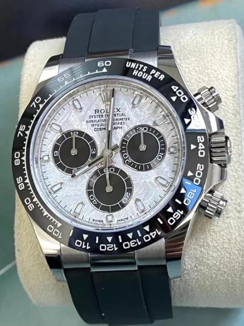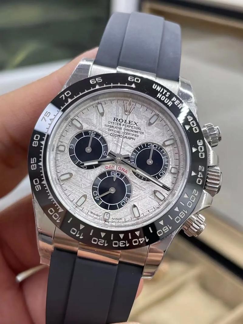 Swiss Rolex Daytona Replica 116519LN Rubber strap 40MM.Original 904L stainless steel platinum-plated case, platinum-coated ceramic ring mouth, N4130 full-function movement, real meteorite dial.