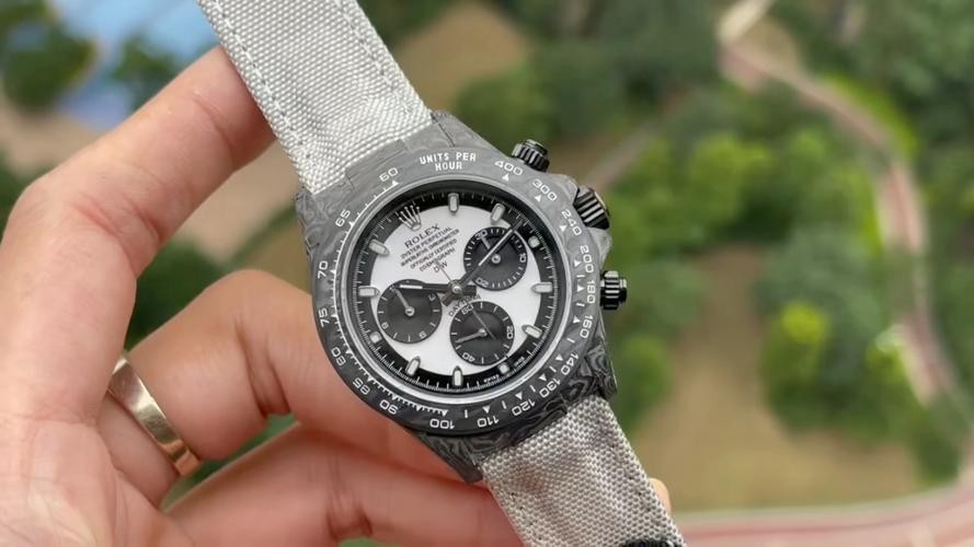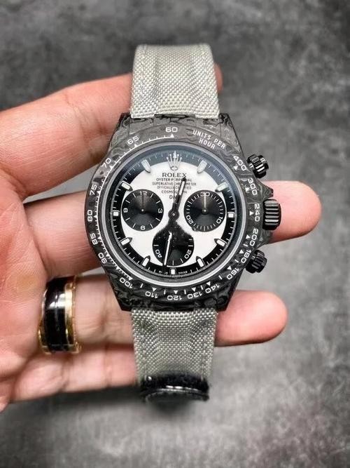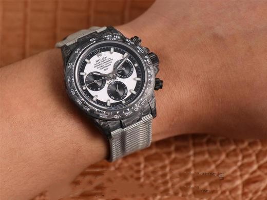 Swiss Rolex Daytona Replica Canvas strap 40MM.WWF new product release: The Diw team remodeled version of the ROLEX cosmic chronograph Daytona series. [Case] Made of carbon fiber material, light and comfortable to wear, each watch has a unique carbon fiber pattern. Because the carbon fiber material is very hard, the loss of the case during the CNC molding process is also very large! [Mirror surface] The double-sided electroplating high-permeability film process increases the permeability of the entire sapphire mirror surface by 50%; a good mirror surface can improve the texture of the entire watch! [Literal] Novel style, each nail scale is chamfered and polished to enhance the literal texture and gloss! [Bracelet] It is hand-woven from parachute fabric, with cowhide inside, breathable and comfortable, soft and very close to the hand, and the lines of the strap echo the literal color, which is completely in line with the original! [Movement] Using the precise and mature Shanghai 7750 chronograph movement, the functions are synchronized with the original!