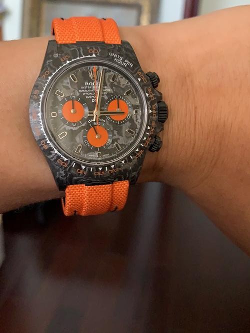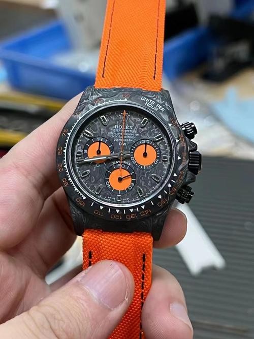 Swiss Rolex Daytona Replica Canvas strap 40MM.JH's new product, ingenuity and ingenuity, chase dreams more than cosmic timing The carbon fiber customized version of the Daytona series, the watch is not only light to wear, but also hard to wear. And each watch has a unique carbon fiber pattern. [Case] Watch size 40X13.6 [Bracelet buckle] The strap is made of artificial fiber woven belt, which is breathable and comfortable, and soft in texture. The unique style of a carbon fiber Rolex is crafted with ingenuity. The market exclusively uses raw materials imported from Japan to create a full carbon fiber case with nanotechnology. There are no pores on the case body. The bezel including the bottom cover are made of high-composite carbon fiber and super luminous powder. The details are hand-chamfered and polished. The texture is extraordinary.