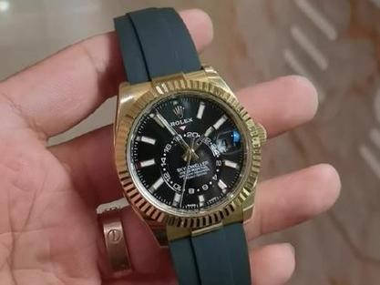 Swiss Rolex Sky Dweller 326938 Replica Rubber strap 42MM.[Case] Size 42MM, stable and reliable, graceful and generous! The watch garden adopts the Rolex RingCommand triangular pit pattern, and the rotating outer ring can adjust the month function; scratch-resistant sapphire crystal, anti-reflective convex magnifying date window; [Bracelet] Oyster stainless steel bracelet, folding clasp with 5 mm section extension system: [Dial] Radiating sun texture, red dot month display in 12 small windows on scale; [Movement] Equipped with fully automatic 9001 movement; 【Function】 Date display month display year calendar display dual time zone.