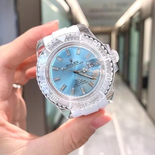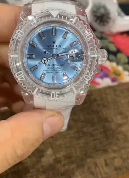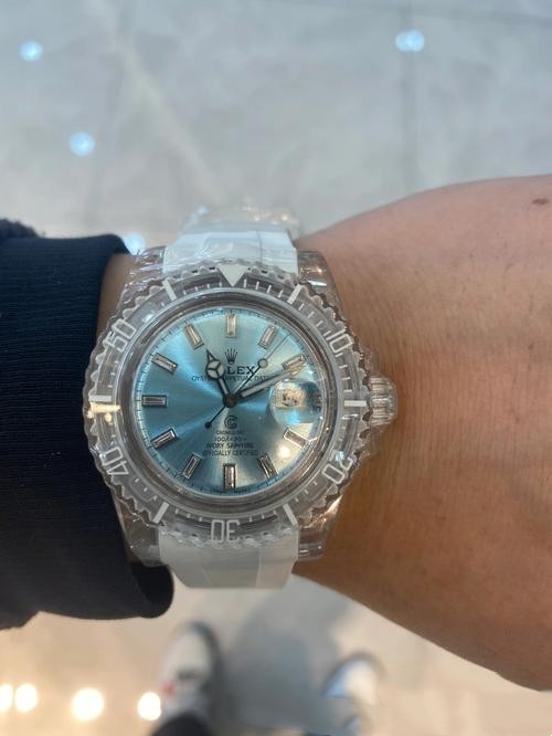 This Rolex replica is perfect! The baby blue dial is beautiful and the rubber strap is comfortable. I'm very happy with my purchase.