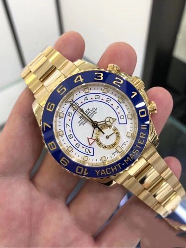 Swiss Rolex Yacht Master Replica 116680-0002 Yellow Gold strap 44MM.Replica Rolex Yacht-Master II White Dial Swiss Automatic Men's Watch 116680-0002 44mm----18k yellow gold stainless steel case with a 18k yellow gold rolex oyster bracelet. Bi-directional rotating ring command 18k yellow gold bezel with a blue top ring. White dial with luminous blue-tone hands and index hour markers. Yacht race markers. minute markers around the outer rim. Dial Type: Analog. Luminescent hands. One subdial displaying: small second. Automatic movement. Scratch resistant sapphire crystal. Screw down crown. Solid case back. Round case shape, case size: 44 mm. Oysterlock clasp. Water resistant at 100 meters / 330 feet. Functions: hour, minute, second, countdown. Yacht-master II Series. Luxury watch style.