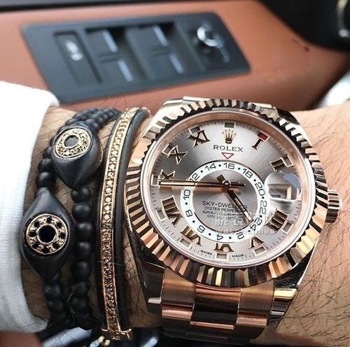 Brand: Rolex Range: Sky-Dweller Reference number: 326935 Gender: Mens Movement: Automatic Case Dimensions: 42MM Strap Colors: Rose Gold Case Shape: Round Crystal: Scratch Resistant Sapphire Bezel Color: Rose Gold Case Material: Stainless Steel Dial Color: Rose Gold Water Resistance: Life waterproof Band Material: Stainless Steel Bezel: Fluted Band Name: Oyster Bezel Material: Stainless steel Clasp: Folding Clasp With Safety Latch Availability: Item is in stock Screw-in Crown: Yes -
