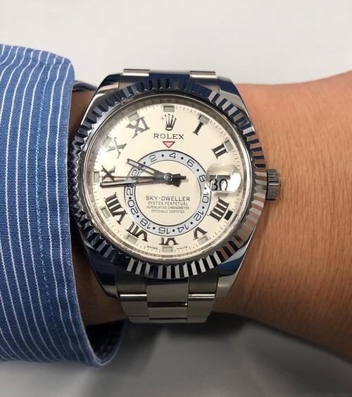Brand: Rolex Range: Sky-Dweller Reference number: 326939 Gender: Mens Movement: Automatic Case Dimensions: 42MM Case Material: Stainless Steel Dial Color: White Crystal: Scratch Resistant Sapphire Bezel Color: Silver Water Resistance: Life waterproof Band Material: Stainless Steel Strap Colors: Silver Case Shape: Round Bezel: Fluted Band Name: Oyster Bezel Material: Stainless steel Screw-in Crown: Yes Case Back: Solid Clasp: Folding Clasp With Safety Latch -