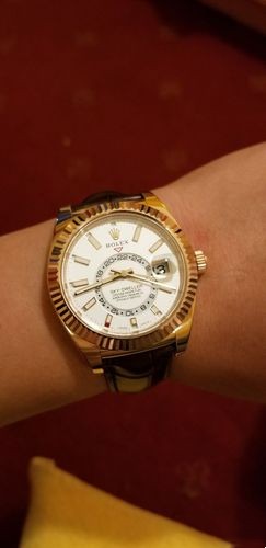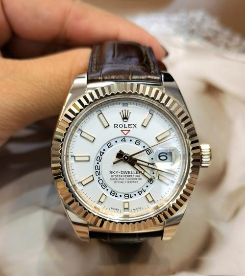 Brand: Rolex Range: Sky-Dweller Reference number: m326138-0010 Gender: Mens Movement: Automatic Case Dimensions: 42MM Crystal: Scratch Resistant Sapphire Bezel Color: Yellow Gold Strap Colors: Brown Case Shape: Round Case Material: Stainless Steel Dial Color: White Water Resistance: Life waterproof Band Material: Leather Bezel: Fluted Bezel Material: Stainless steel Clasp: Folding Clasp With Safety Latch Availability: Item is in stock Screw-in Crown: Yes -