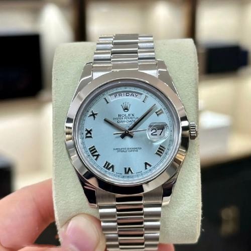 Brand: Rolex Range: Day-Date Reference number: 118206 Gender: Mens Movement: Automatic Case Dimensions: 36 MM Case Material: Stainless Steel Dial Color: Blue Crystal: Scratch Resistant Sapphire Bezel Color: Silver Strap Colors: Silver Case Shape: Round Water Resistance: Life waterproof Band Material: Stainless Steel Bezel: Smooth Band Name: President Bezel Material: Stainless steel Screw-in Crown: Yes Case Back: Solid Clasp: Folding Clasp With Safety Latch -