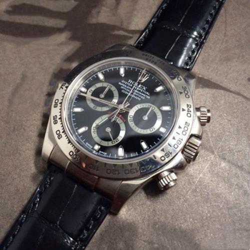 Brand: Rolex Range: Daytona Reference number: 116519 Gender: Mens Movement: Automatic Case Dimensions: 39 MM Crystal: Scratch Resistant Sapphire Bezel Color: Silver Strap Colors: Black Case Shape: Round Case Material: Stainless Steel Dial Color: Black Water Resistance: Life waterproof Band Material: Crocodile Bezel: Smooth Bezel Material: Ceramics Screw-in Crown: Yes Case Back: Solid Clasp: Folding Clasp With Safety Latch -