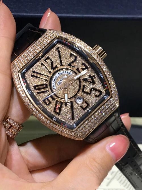 The Swiss Franck Muller Replica 8880 SC DT Black Strap 42MMx 46.5MM x 16MM of the best edition use pavé diamonds plated in 18 carat pink gold in satin-finished steel 316L and the dial is also covered with 18 carat pink gold and fully paved diamonds. The dial corresponds to the time stamps for the Arabic numerals and the display window for the 6 o'clock position. The total size of the case is 42 mm x 46.5 mm x 16 mm, and the watch adapts to a rubber strap lined with black leather with a folding clasp. Swiss Franck Muller replica watches 8880 SC DT Black Strap 42MMx 46.5MM x 16MM. The crystal of the watch uses a scratch resistant sapphire glass mirror which is full of transparency. If you look at the watch from the front, it's not like a mirror. The Swiss automatic movement ETA2824-2 resumes the movement, which works with precision and without error.