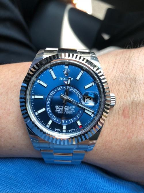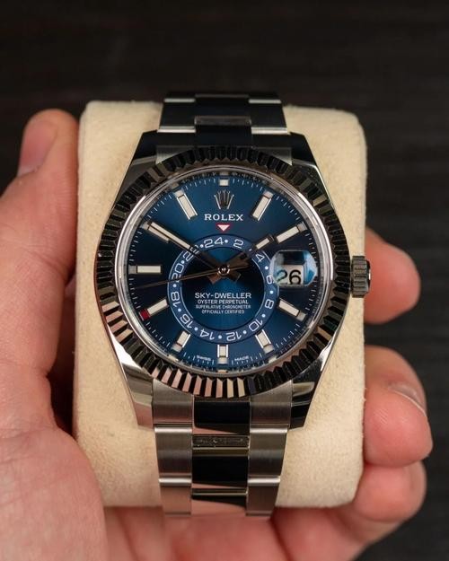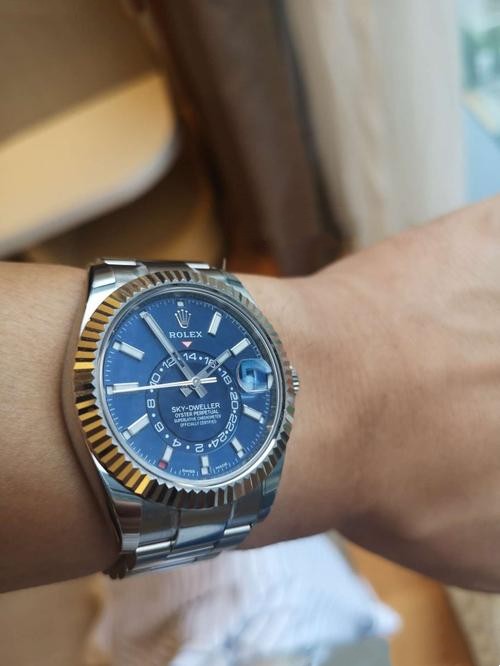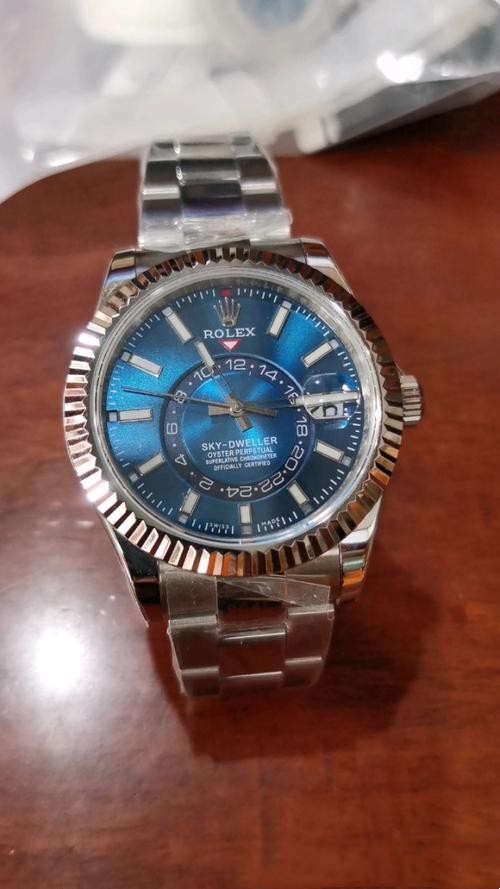 Swiss Rolex Sky Dweller Replica Stainless steel strap 42MM Blue Dial.Nco Rolex Skywalker Skywalker V2 to upgrade 2022 [Fear] the latest release All details and dimensions: 1: upgraded the triangle cratered circle depth and chamfered corner on the side to make it drastically three-dimensional 2: lowered the GMT double time disk to make the 6-pin height consistent with the original. 3: Dial diameter overall small, so that its size to achieve the concept of engraving.4: dial luminous nail using Taiwan special nail bevelled flower more bright. 5: Corrected the color of the blue dial, so that the color of the blue disc to achieve the original SAO blue effect. 6: Trim the height of the bottom cover, making its overall thickness reach the original 14.3mm, and wear more hand. 7: Watchband modified the 3-in-1 head grain, so that it can be universal original exchange N factory production, quality can be identified.