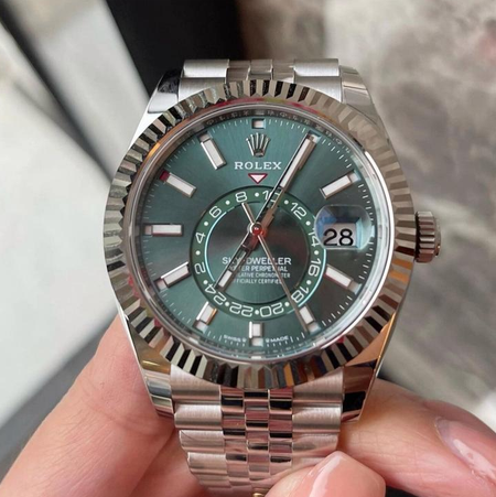 This Rolex Sky Dweller replica is absolutely fantastic! The green dial is so unique and eye-catching, and the stainless steel strap feels very durable. The watch is comfortable to wear and the size is perfect.