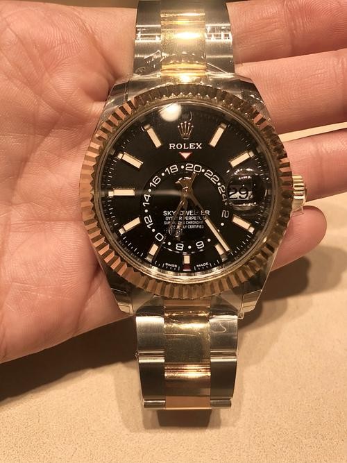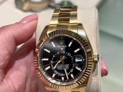Swiss Rolex Sky Dweller Replica Yellow Gold strap 42MM Black Dial.DR Rolex Skywalker Series. [Case] Size 42MM, steady, reliable, generous! Table park using Rolex RingCommand triangle pit pattern, rotating the outer ring can be shifted month function; Anti-scratch sapphire crystal, anti-reflection convex through type enlarged calendar window; [Strap] Oyster steel chain, folding buckle with 5mm section extension system: [dial] radiating sun texture, scale 12 small window red dot month display; [Movement] Equipped with automatic mechanical 9001 movement; 【 Function 】 Date display Month display calendar display dual time zone.