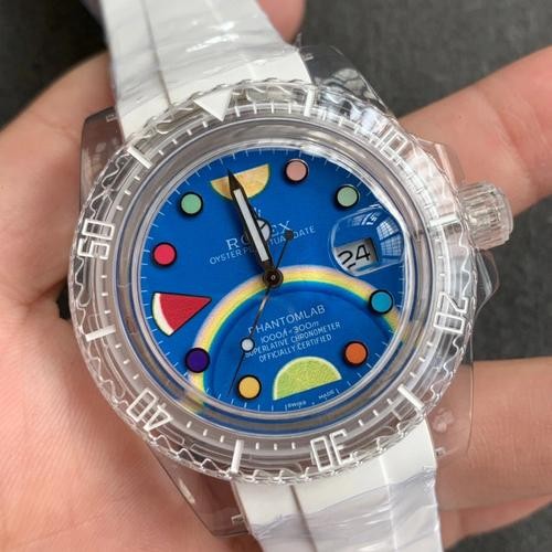 Swiss Rolex Submariner Replica Rubber strap 40MM PHANTOMLAB&ROLEX Blue Dial.TW factory Rolex PHANTOMLAB&ROLEX joint force crystal series watch attack! Subvert traditional concepts! PMMA crystal material! Top with 3135 blue gossamer movement! The best Thai imported rubber watchband market, never yellow (order is sent with the same material translucent watchband a pair) and the original fine grinding buckle, the whole table ice blue luminous, different from the market, more crystal transparent! After months of pursuing the beauty of details, unrestrained work, release the charm of the difference! TW originality inheritance, focus on excellent products!